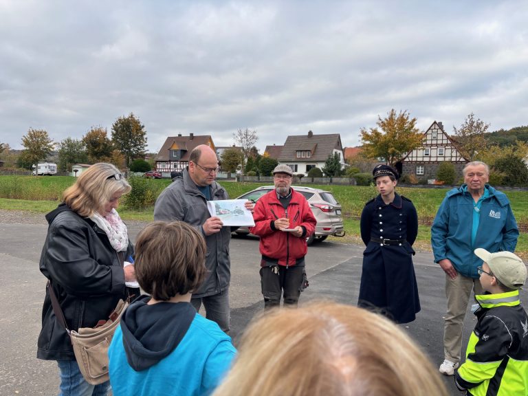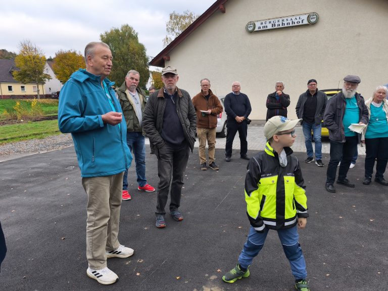 Am 15.10.2025 luden wir zum Bahnhof Londorf zu unserer Veranstaltung „Eisebooh trifft Ebbelwoi“ ein. Wir informierten über die Reaktivierung der Lumdatalbahn und machten mit unseren Besuchern einen informativ-unterhaltsamer Rundgang über das Bahnhofsgelände. Mit dabei waren Bürgermeister Björn Zimmer sowie Zeitzeugen aus der Ära des großen Sägewerkes. Dazu reichten wir Apfelwein, Apfelsaft und kleine Snacks vom Bäcker.